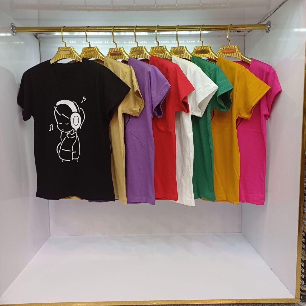 تیشرت نخ پنبه زنانه در طرحهای مختلف قیمت:138000 جنس:نخ پنبه