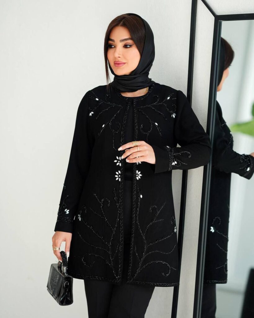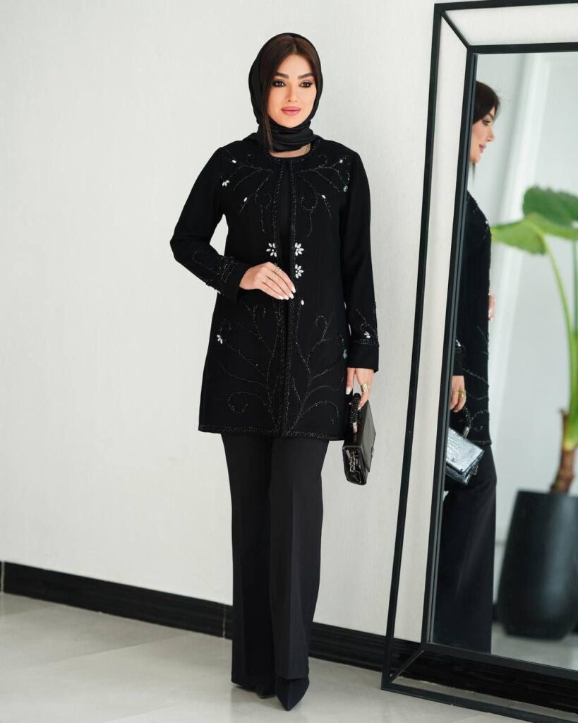 🔍پارچه : کرپ لمه جت بلک تمام جواهر دوزی